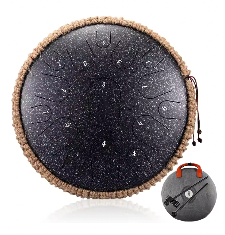 The 15-tone steel tongue drum is a popular instrument used in sound healing therapy. This type of drum produces a soothing and calming sound that can help reduce stress and anxiety, promote relaxation, and induce a meditative state.