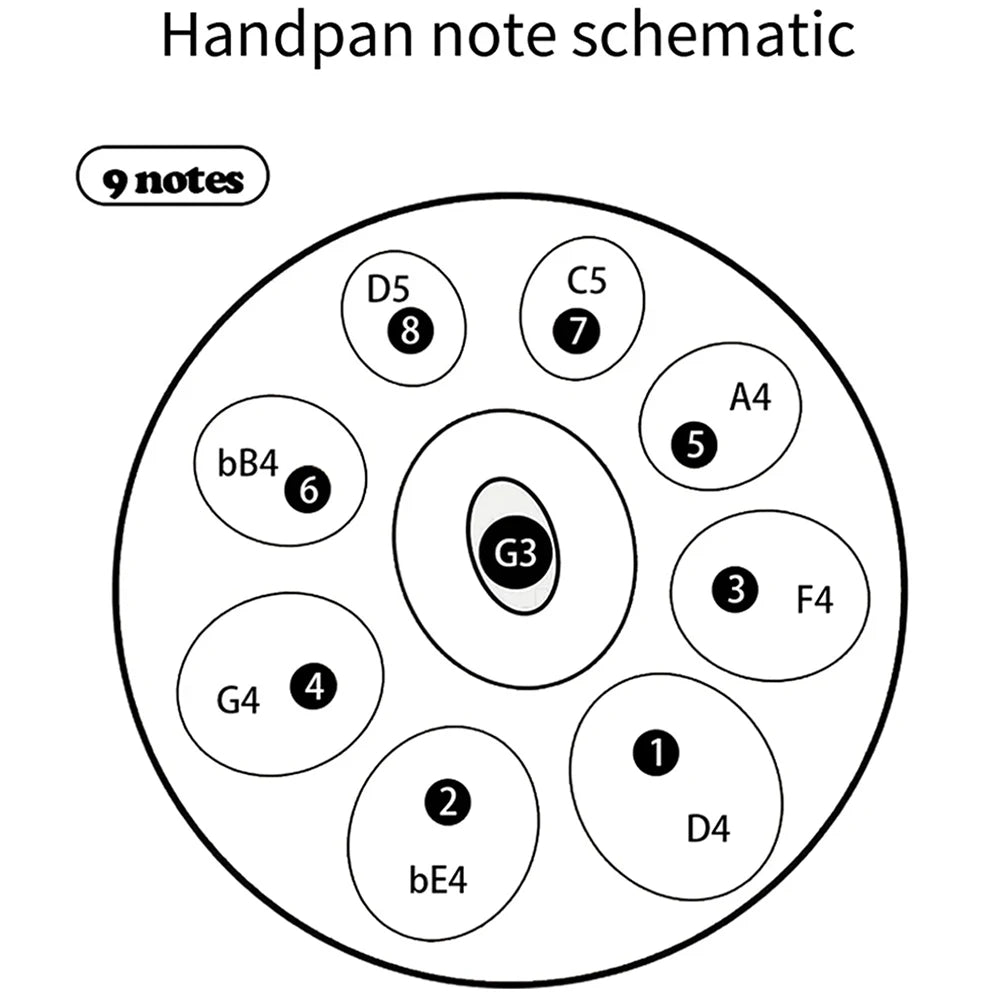 Each handpan is a work of art — handcrafted, shaped, and tuned to create a rich, resonant sound that seems to float through the air. The central dome, called the Ding, produces the root note, while the surrounding tone fields create a balanced and harmonious scale. Played with the hands, the instrument responds with warmth, sensitivity, and emotional expression.