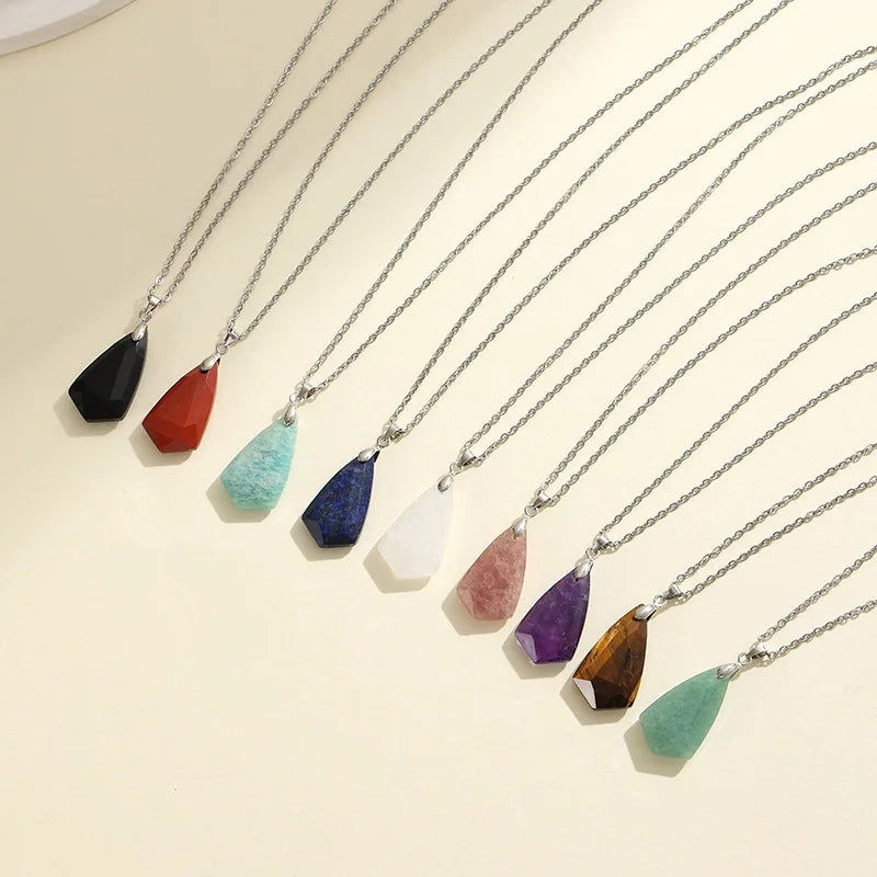 This Natural Stone Geometric Pendant Necklace is both a beautiful everyday accessory and a functional crystal pendulum. Designed with a short faceted geometric stone point, it can be worn as a necklace or used intentionally for pendulum work, energetic focus, and intuitive practices.