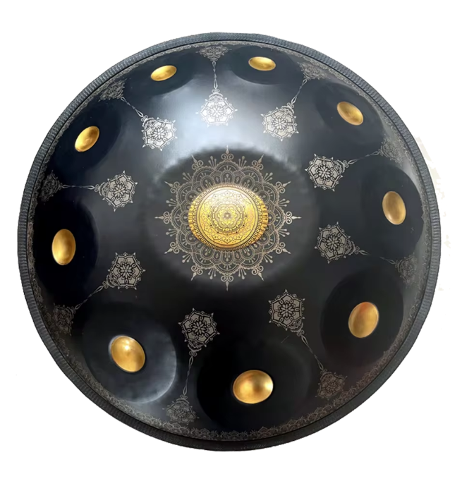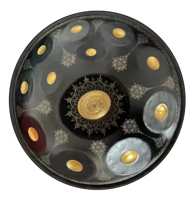 Each handpan is a work of art — handcrafted, shaped, and tuned to create a rich, resonant sound that seems to float through the air. The central dome, called the Ding, produces the root note, while the surrounding tone fields create a balanced and harmonious scale. Played with the hands, the instrument responds with warmth, sensitivity, and emotional expression.