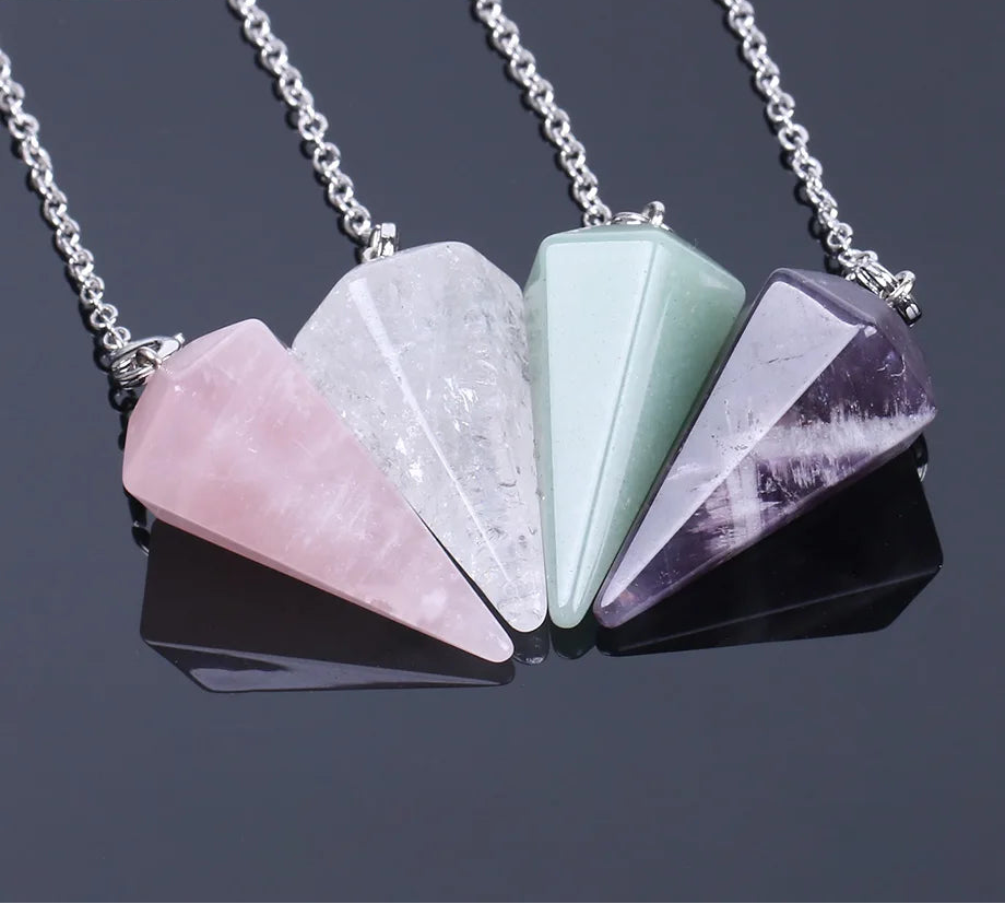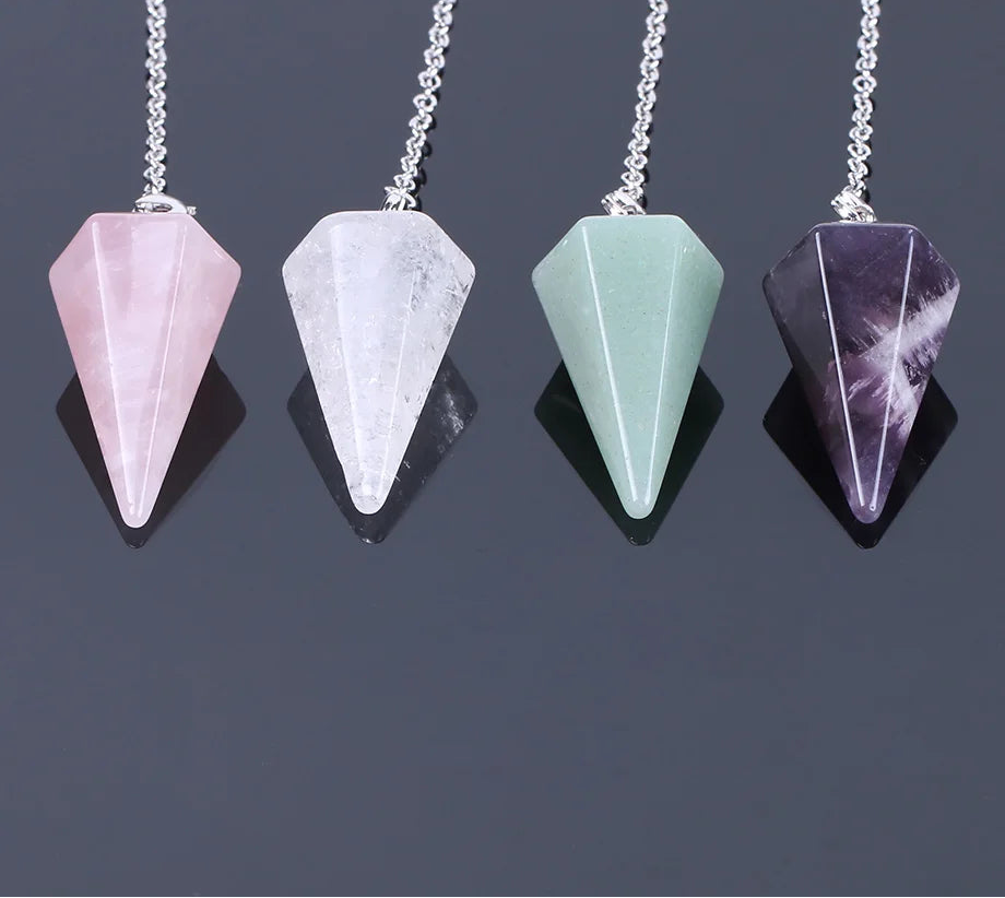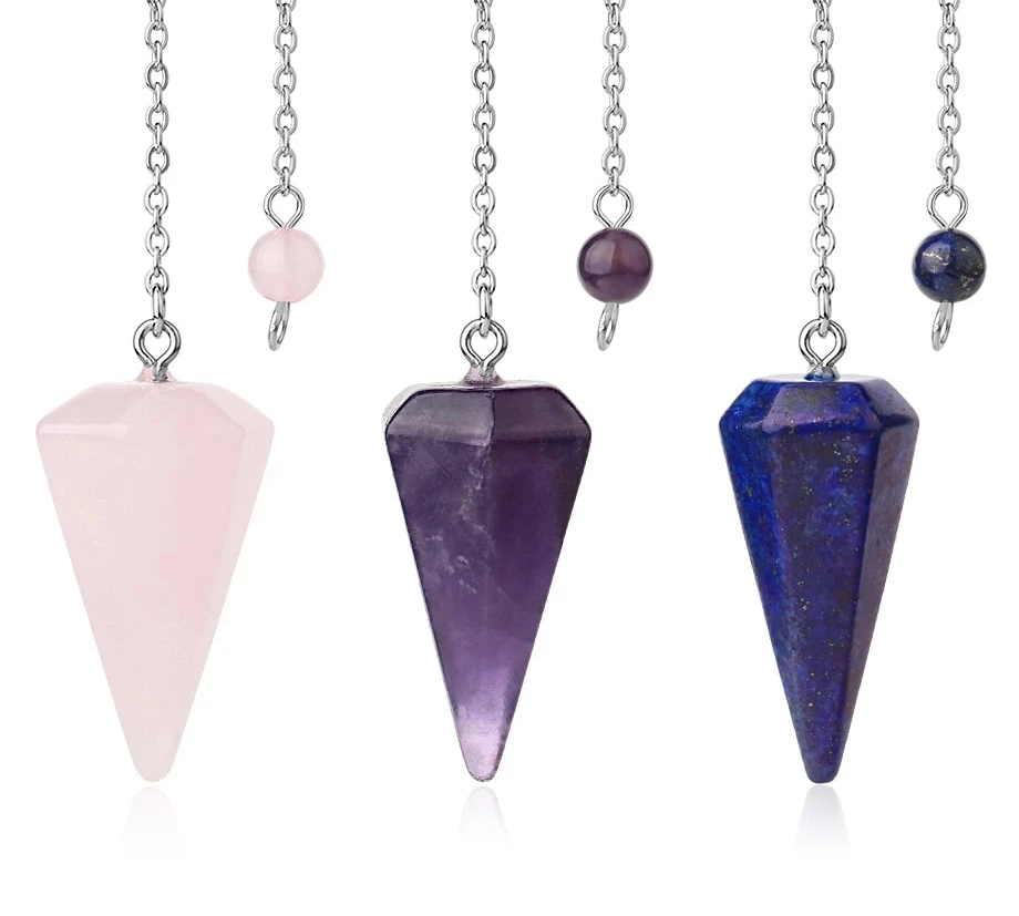 Tap into your intuition and refine your energetic awareness with this Natural Gemstone Crystal Hexagonal Pendulum. Featuring a faceted hexagonal point designed to direct and focus energy, this pendulum is ideal for dowsing, chakra work, intention setting, and intuitive guidance.